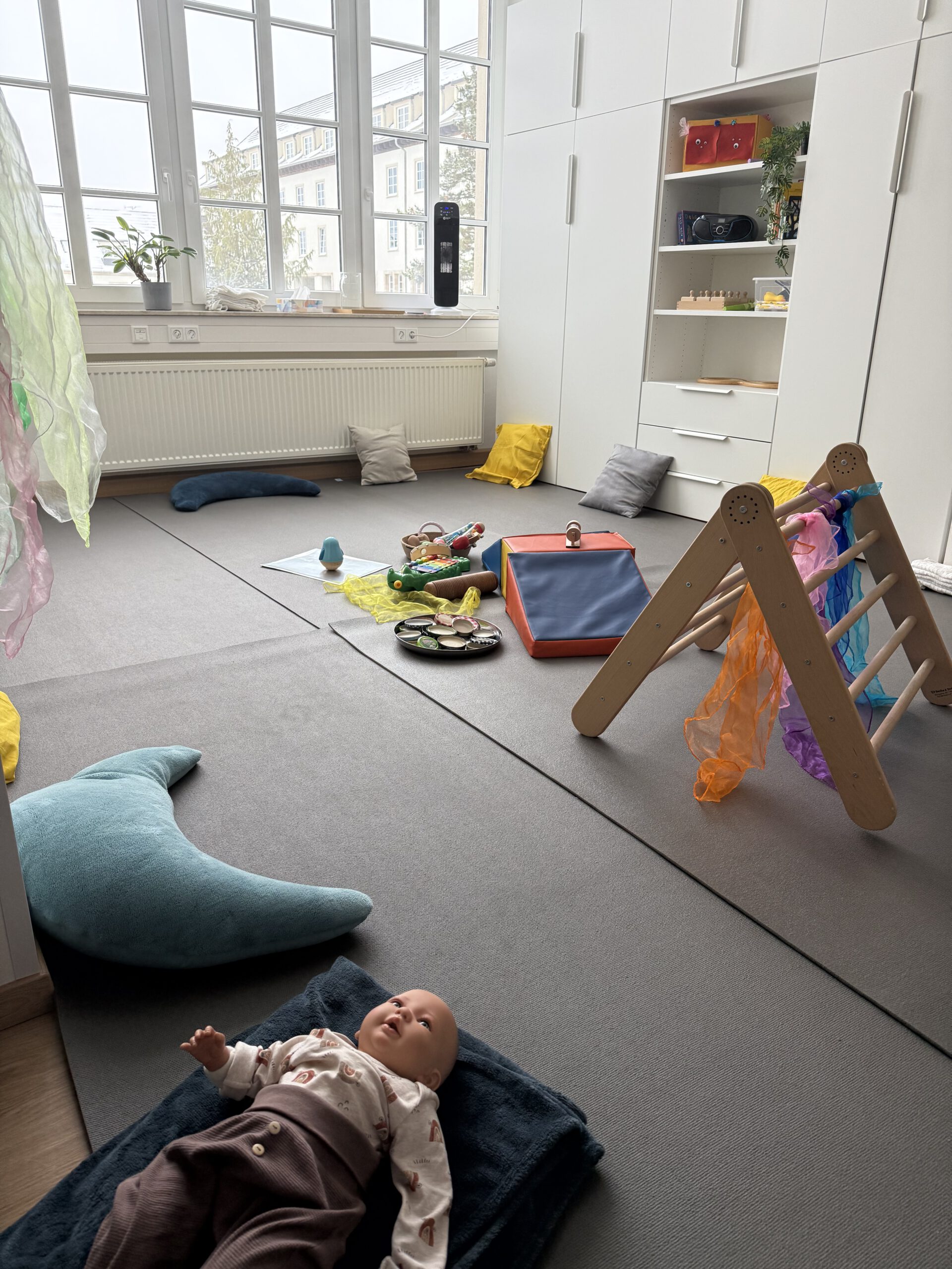 Du bekommst außerdem Gelegenheit zum Austausch mit anderen Eltern, Zeit für Fragen rund um das erste Lebensjahr und viele Anregungen, die du leicht zuhause umsetzen kannst.